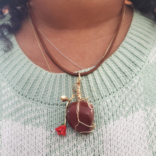 • Red Jasper and Rose Necklace
