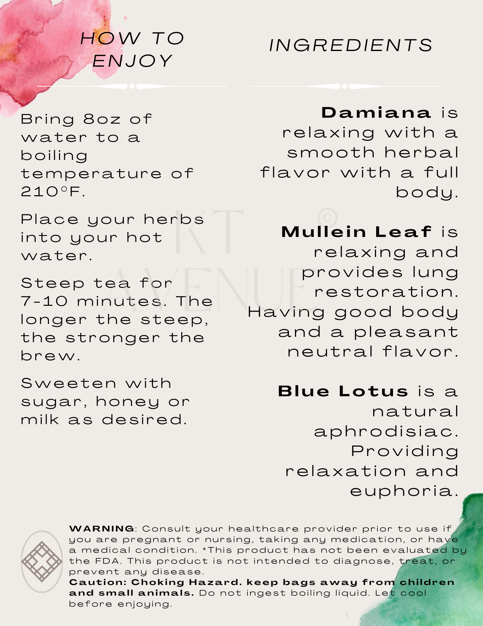 Blue Lotus is a natural aphrodisiac. Providing relaxation and euphoria.