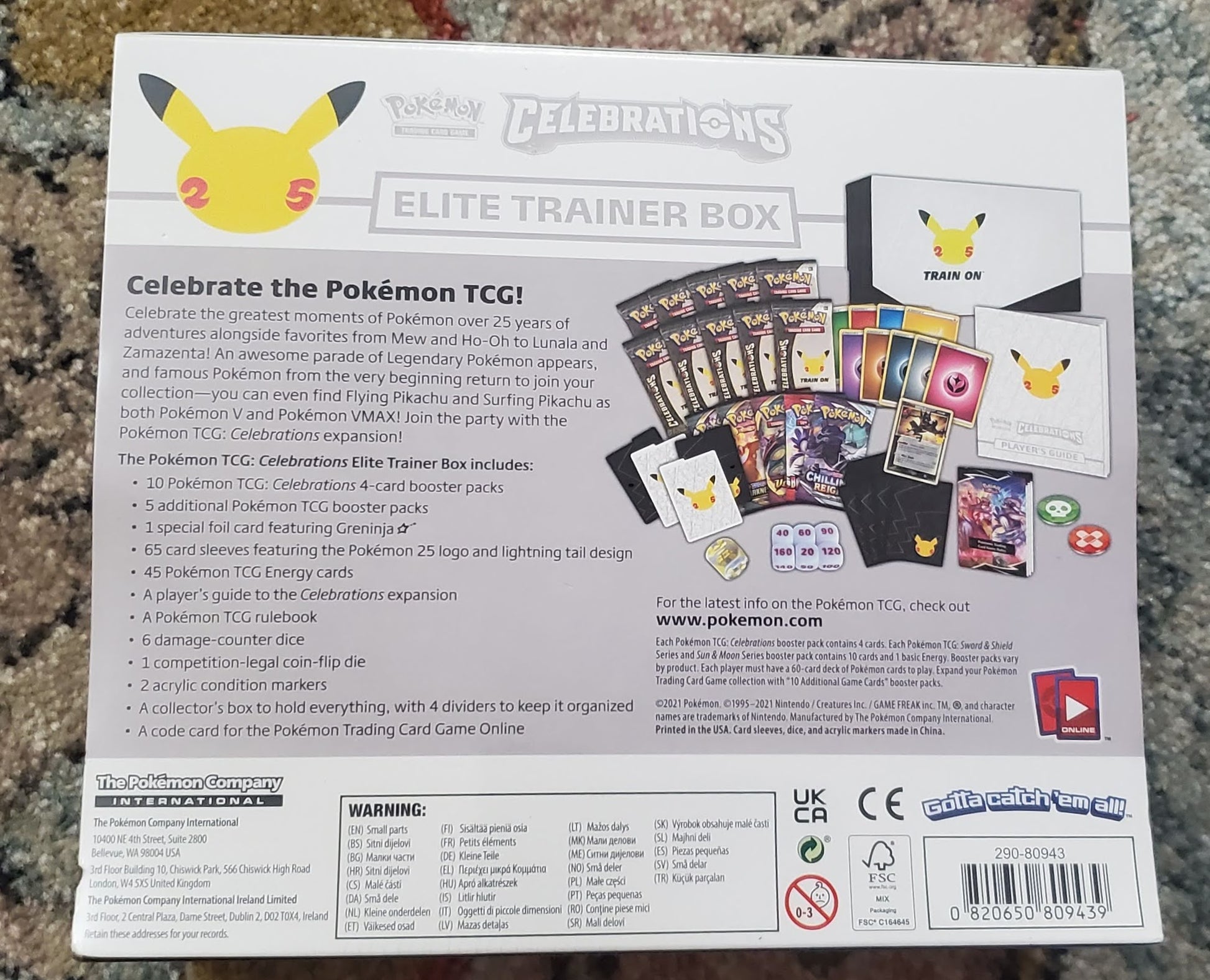 Whether you're seeking to complete your collection, enhance your gameplay, or simply bask in the nostalgia of 25 years of Pokémon, the Celebrations Elite Trainer Box has you covered. Don't miss your chance to own this exclusive piece of Pokémon history. Order now to secure your factory-sealed box and embark on a journey to become the ultimate Pokémon trainer!