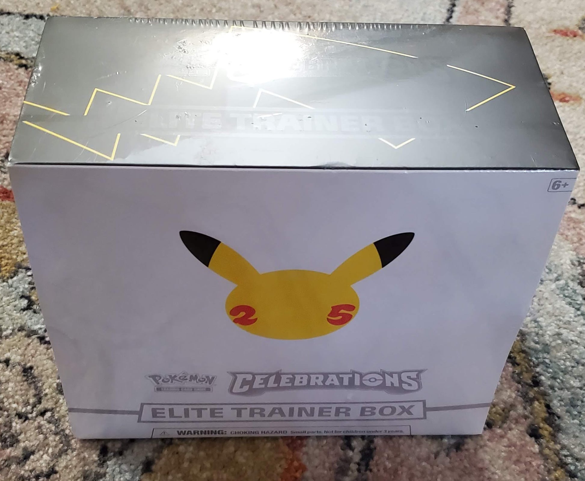 Item Description: The Celebrations Elite Trainer Box is the pinnacle of Pokémon TCG collectibles, designed to celebrate the franchise's 25th Anniversary in grand style. As a factory-sealed, brand-new item, it preserves the excitement and allure of untouched Pokémon cards, making it an essential addition to any collector's stash.