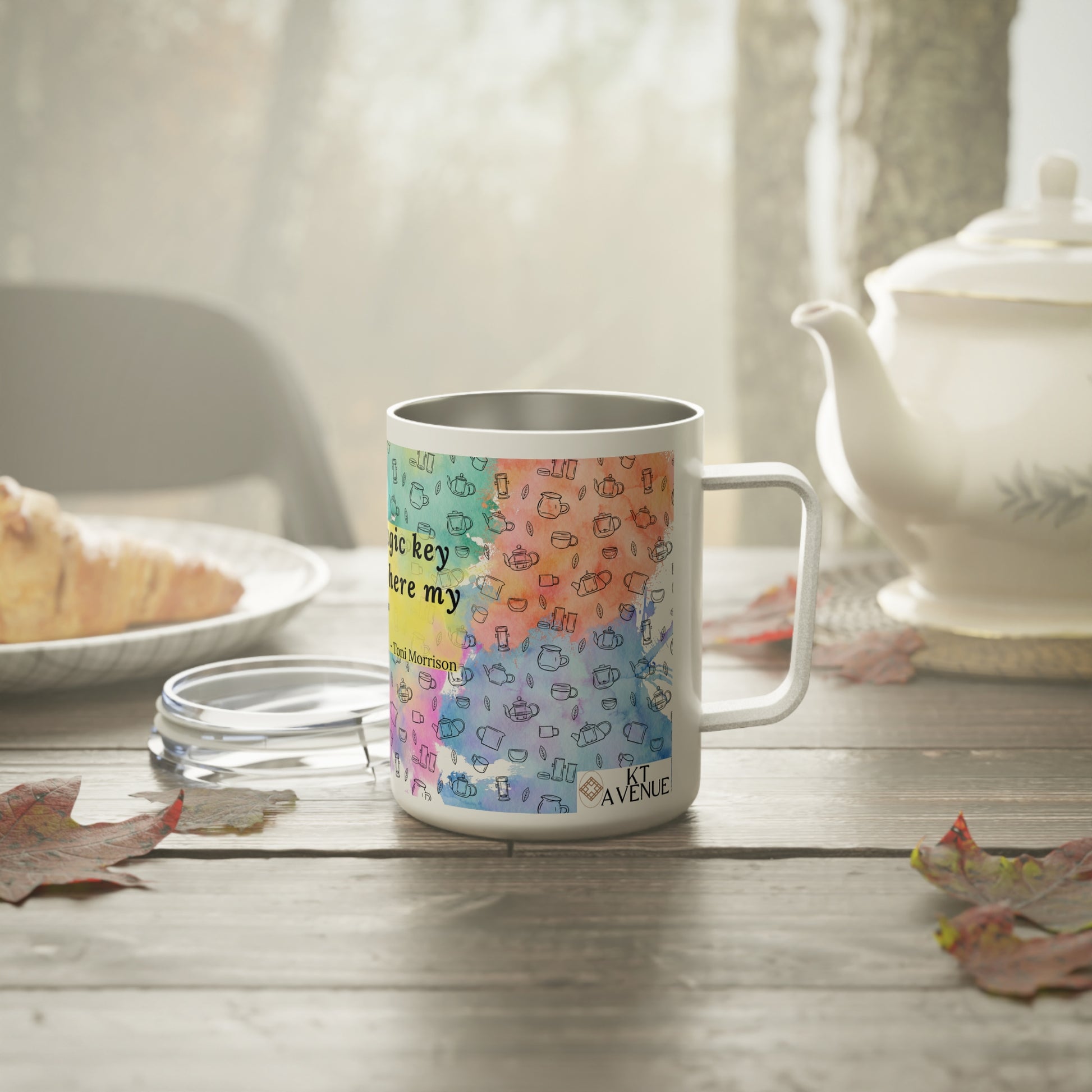 There's nothing quite like taking a refreshing sip of your favorite beverage in the middle of a long adventure. These insulated travel mugs can hold up to 10oz of liquid and come with a sturdy stainless steel, double wall construction, making them a reliable companion for the road. The white detailing adds extra style points while the clear acrylic lid adds another layer of practicality to this already functional favorite. This KT Avenue mug is sure to become your go-to.